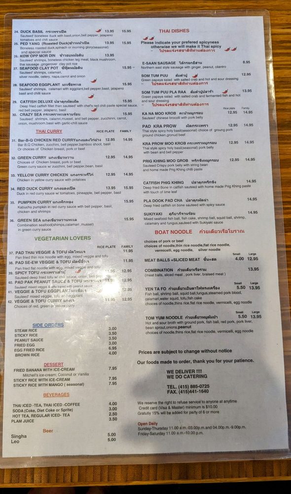 Welcome to Zen Yai Thai Restaurant, your go-to spot for authentic Thai cuisine in San Francisco. Located at 771 Ellis St, this charming eatery offers a diverse menu guaranteed to satisfy lovers of both traditional and contemporary Thai dishes. Highlights include their renowned Beef Combination Boat Noodles and the crispy Catfish Phig Khing, which perfectly balance flavor and texture.