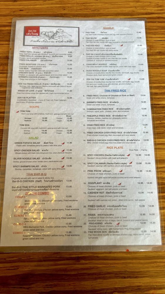 For those craving comfort, the Tom Kha Chicken presents a delightful coconut milk base, rich with aromatic herbs. Vegan options are also available, ensuring everyone can find something delightful. With a casual atmosphere that's perfect for groups and families, Zen Yai makes dining a welcoming experience, enhanced by attentive service. Don't miss their happy hour specials, or the outdoor seating for those who enjoy alfresco dining. Whether you're in for lunch, dinner, or a quick takeout, Zen Yai promises a memorable Thai culinary journey.